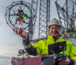 Elios無人機特別之處在于,無人機外形是球籠狀,將里面的雙翼無人機包裹在內,一看就讓人可以放心地摔。